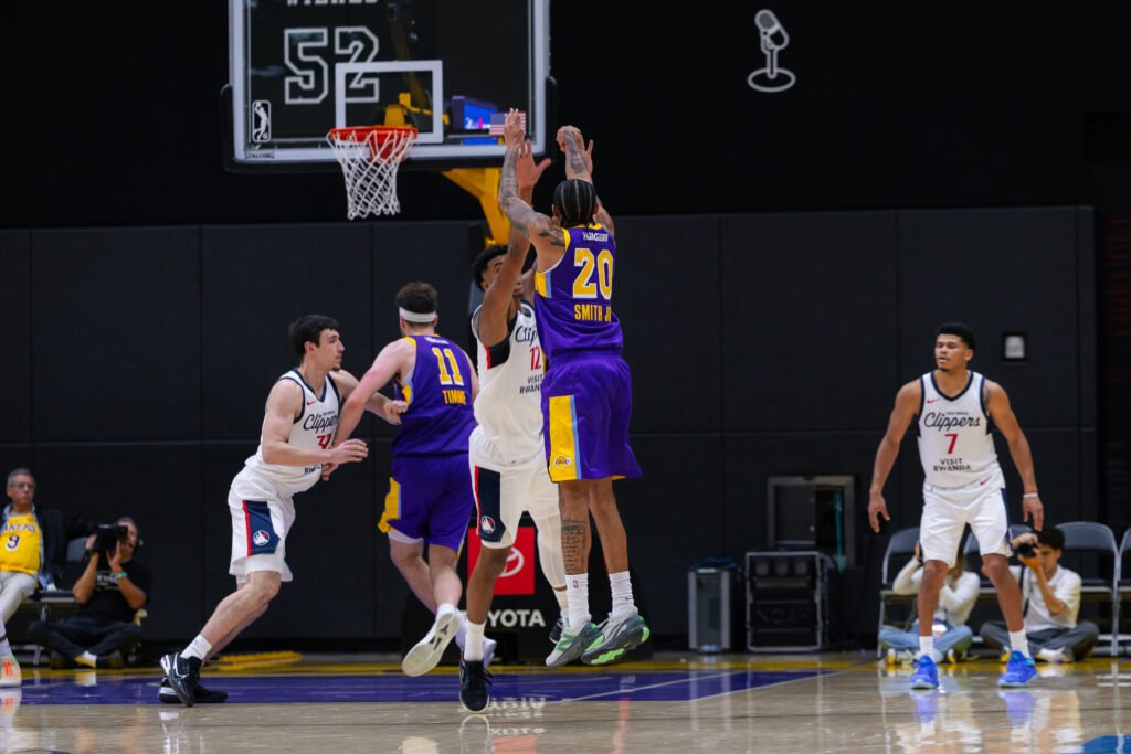 EL SEGUNDO, CA — The South Bay Lakers responded in a big way on Tuesday night, bouncing back from a previous loss with a 127–118 victory over the San Diego Clippers at the UCLA Health Training Center. Leading the charge was Dalton Knecht, who made an immediate impact in his first assignment with South Bay, pouring in a game-high 30 points in an impressive all-around performance.