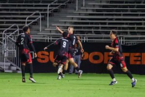 IRVINE, Calif.-Aleksandar Vukovic secured the US Open Cup Round 2 victory over Orange County Soccer Club with a flying header in an intense 1-2 win